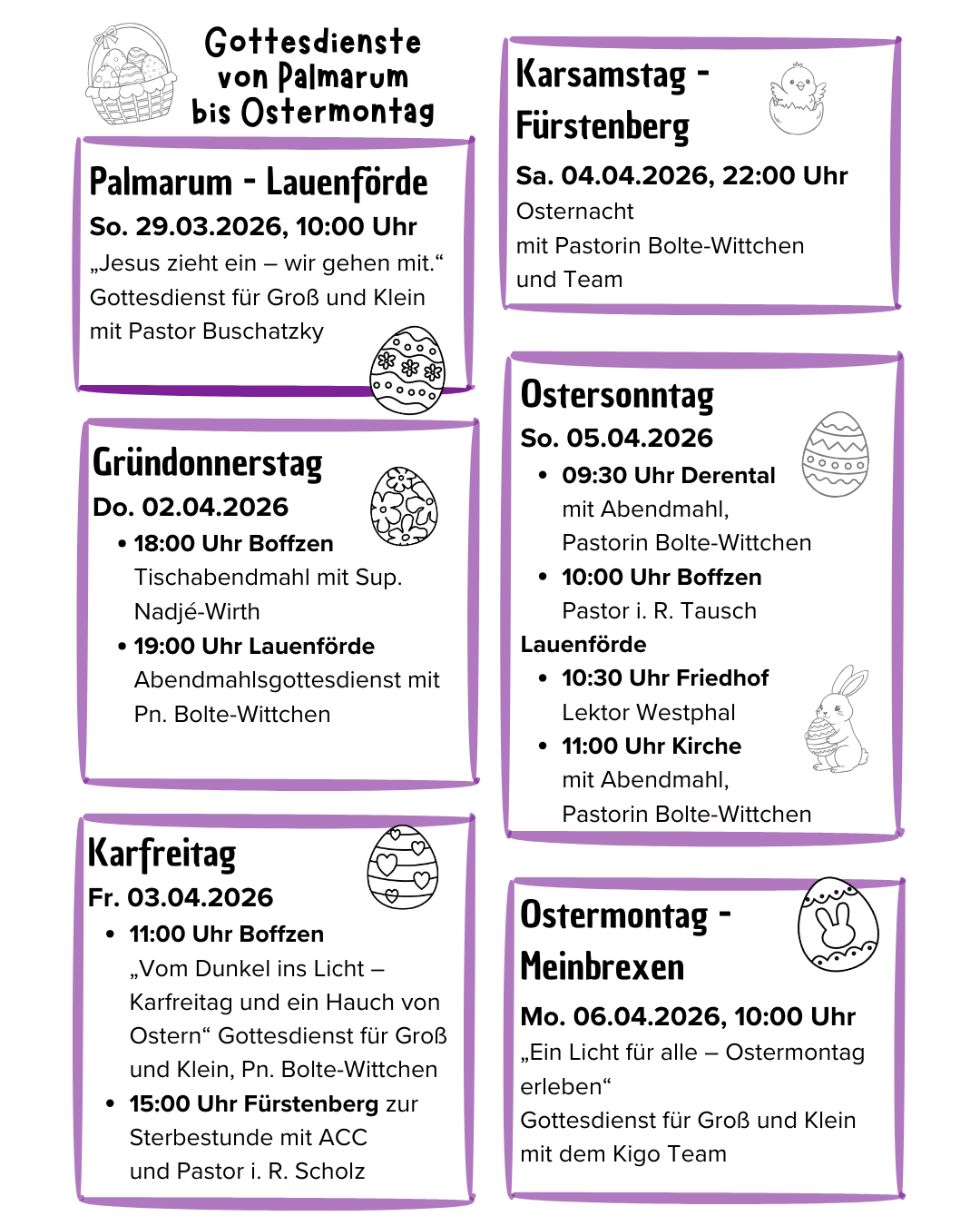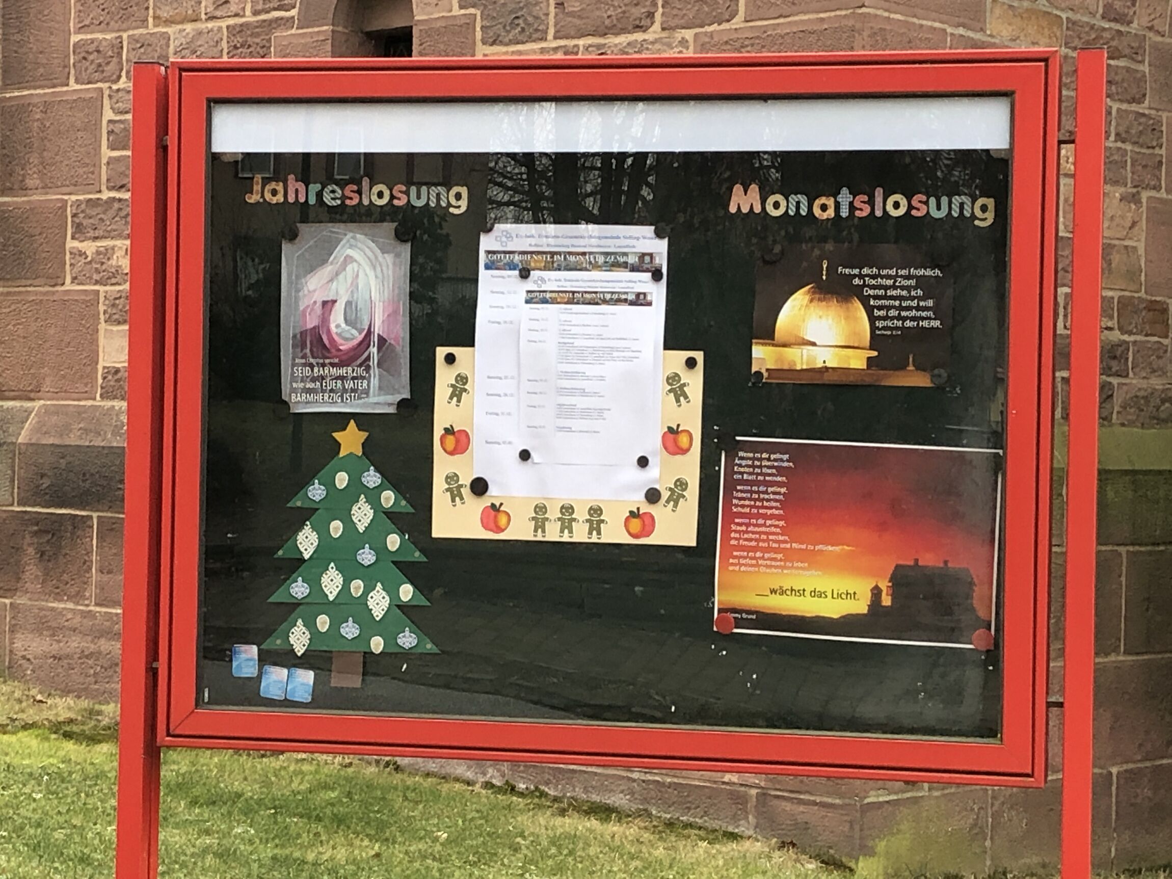 Direkt neben den Kirchen in Fürstenberg, Derental und Meinbrexen stehen Schaukästen, in denen Sie monatlich durch aktuelle Aushänge der Gesamtkirchengemeinde Solling-Weser informiert werden.