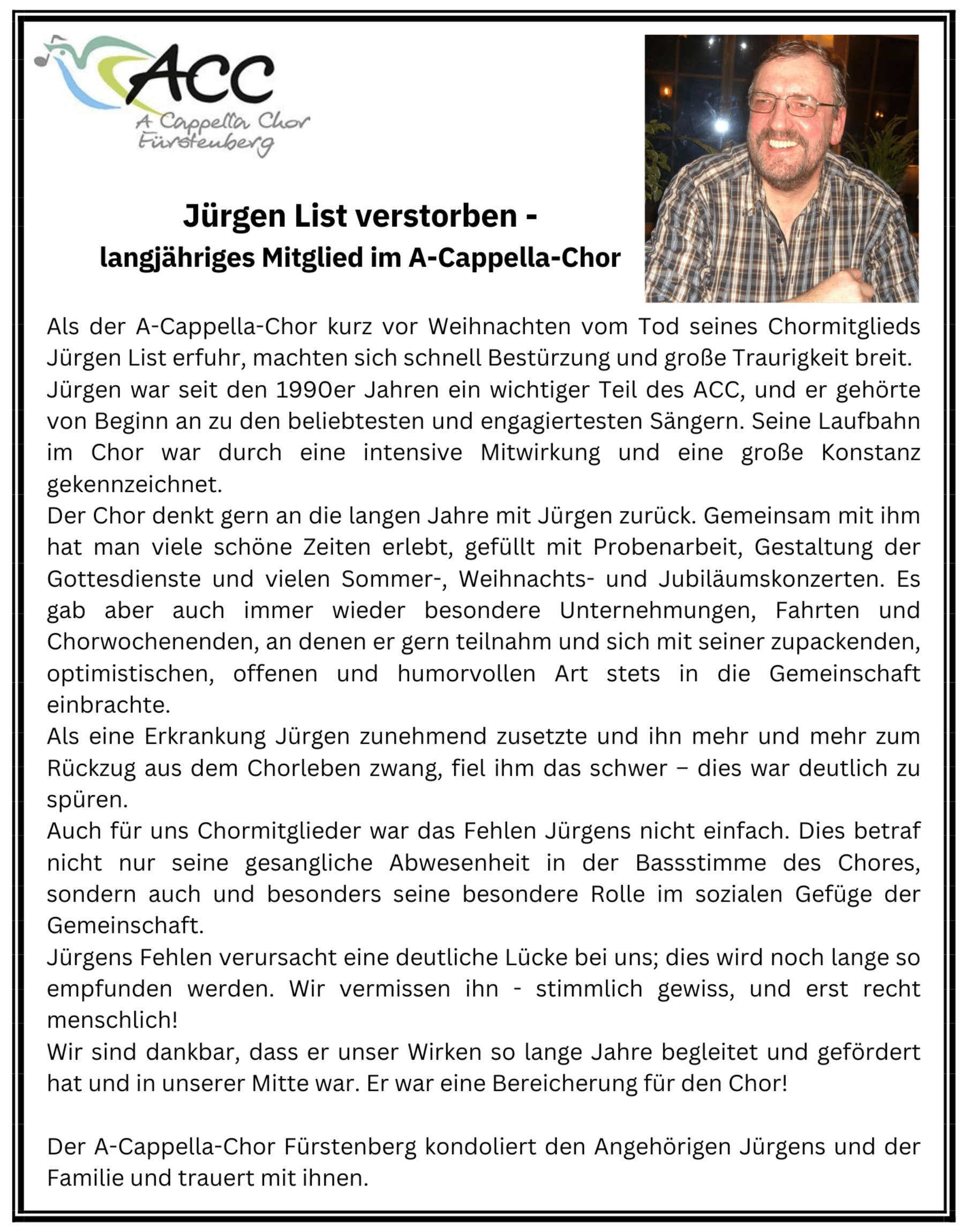 Nachrufe Chormitglieder