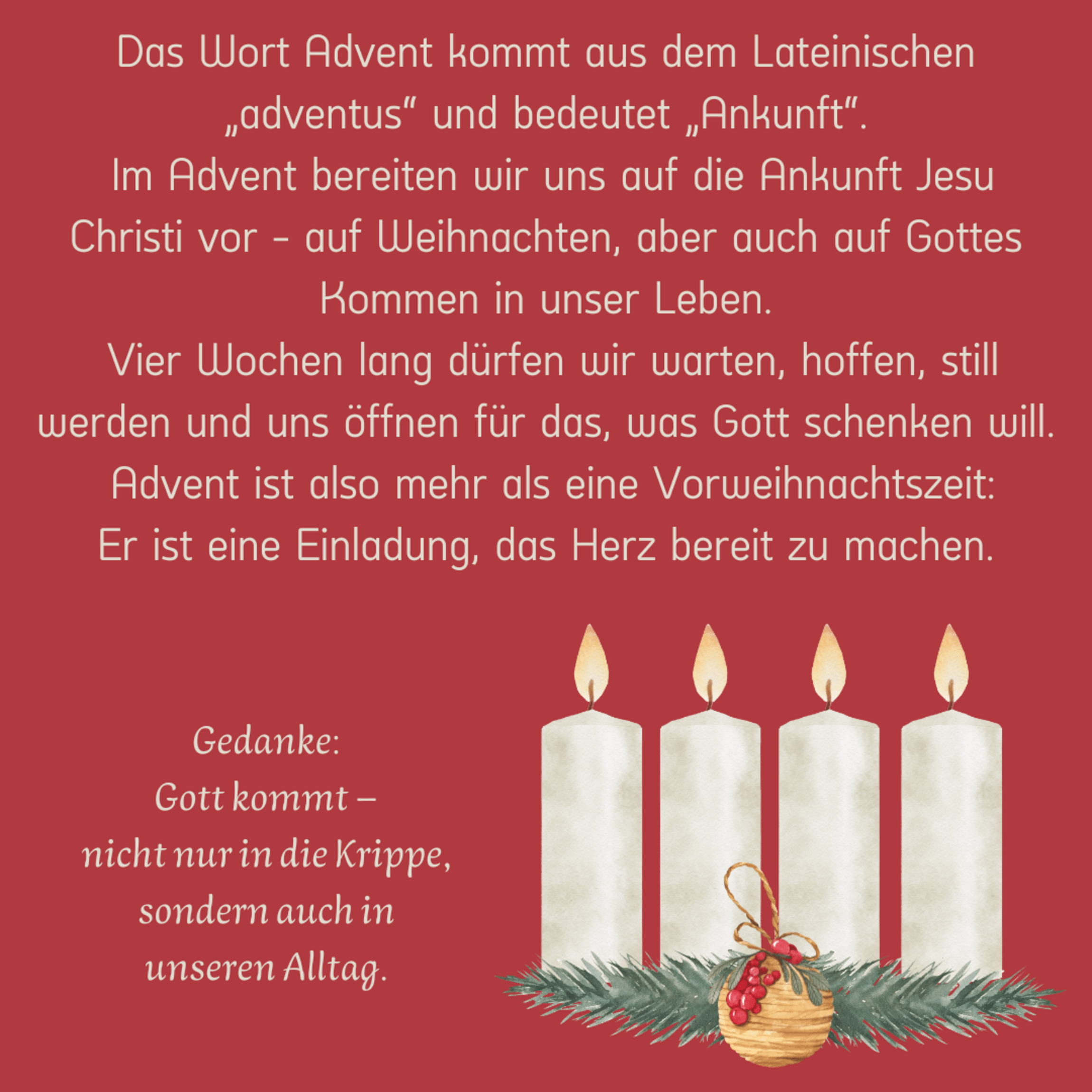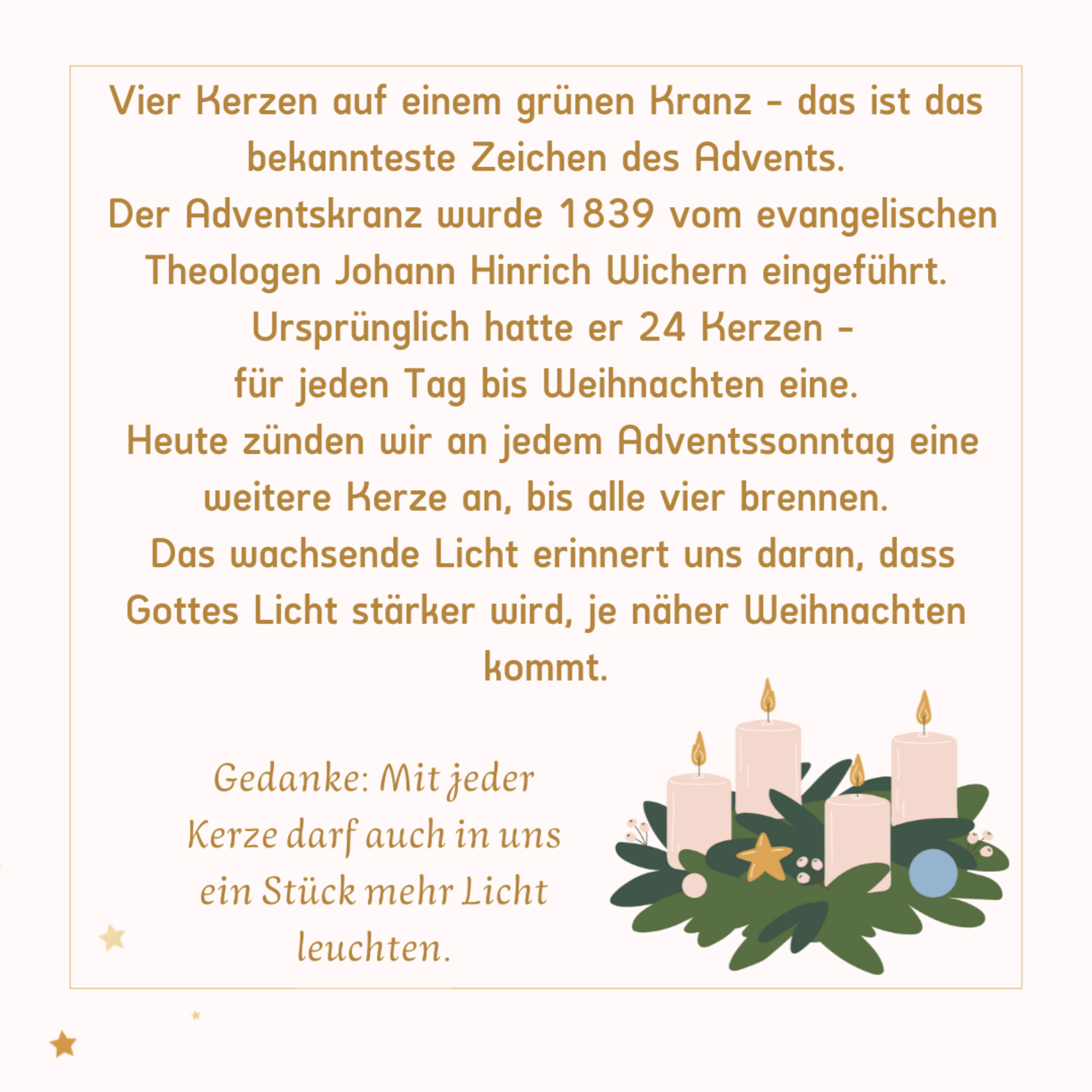 In diesem Jahr finden Sie hinter jedem Türchen ein Symbol, einen Brauch oder etwas, was mit der Advents- und Weihnachtszeit zu tun hat und die Erklärung dazu. Lassen Sie sich inspirieren, lernen Sie etwas Neues kennen oder frischen Sie ihr Wissen auf.