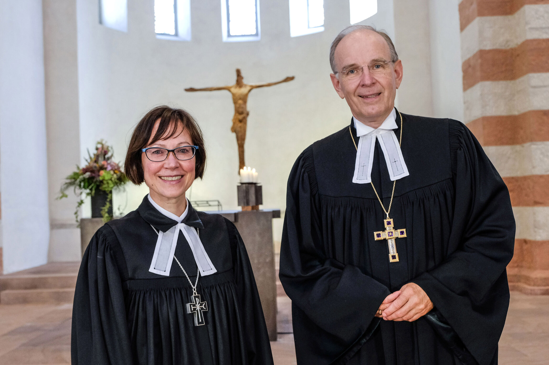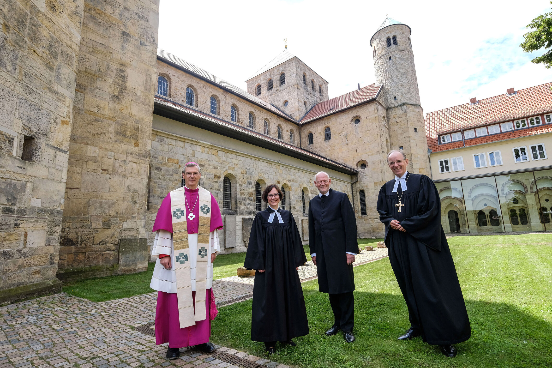Mit einem Gottesdienst wurde am Samstag, 17. Juli, Dr. Adelheid Ruck-Schröder als Regionalbischöfin des Sprengels Hildesheim-Göttingen von Hannovers Landesbischof Ralf Meister in ihr neues Amt eingeführt. „Wir freuen uns, eine große Verstehenshelferin als Regionalbischöfin in unserer Kirche zu haben“, sagte Meister bei der Einführung in der Hildesheimer Michaeliskirche. Zugleich entpflichtete er den langjährigen Regionalbischof Eckhard Gorka von seinen Aufgaben und verabschiedete ihn in den Ruhestand. Unter den Gottesdienstbesucher*innen waren auch der niedersächsische Kultusminister Grant Henrik Tonne und der Bischof des römisch-katholischen Bistums Hildesheim, Dr. Heiner Wilmer.