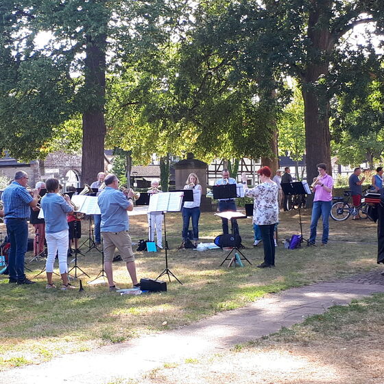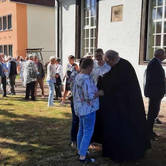 Bei strahlendem Sonnenschein fiel es allen Beteiligten, von Nah und Fern, nicht schwer, beim Sektempfang, dem Posaunenchor, der nach dem Gottesdienst vor der Kirche noch ein paar Stücke gespielt hat, zu lauschen, um es sich dann anschließend bei Kaffee und Kuchen gemütlich zu machen und das ein und andere nette Gespräch mit Frau Bolte-Wittchen und den vielen Besuchern zu führen.
