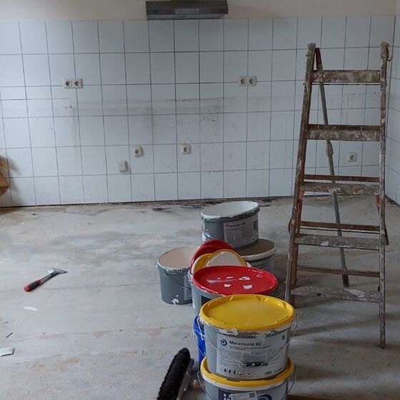 Malerarbeiten, Bodenbeläge, Elektroleitungen, Klempner-, Tischler- und Dachdeckerarbeiten laufen und werden hoffentlich bis zum Monatsende fertig sein.