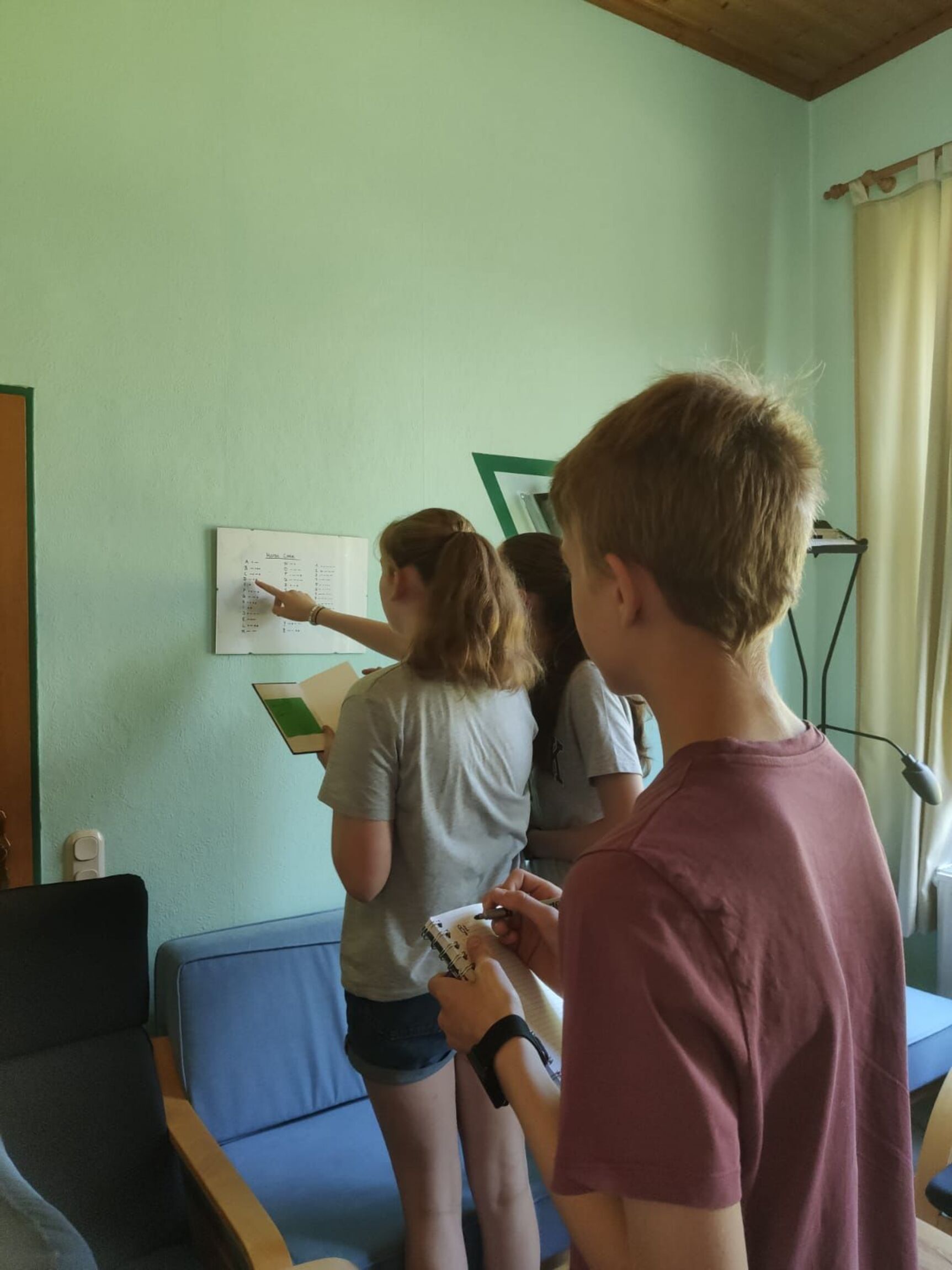 Am 8., 11. und 22. Juli verwandelte sich das Gemeindehaus in einen Escape Room, in dem Jugendliche in Kleingruppen verschiedene Rätsel und Aufgaben lösen mussten. Nachdem der Escape Room im Jugendraum in Fürstenberg vor zwei Jahren so gut angekommen war, lockte das Angebot im Rahmen des Ferien(s)pass Höxter/Boffzen 2023 auch in diesem Jahr wieder viele rätselbegeisterte Jugendliche nach Fürstenberg. Unter dem Motto „Rettet die Landesgartenschau!“ haben sich Laura Neils, Jessica Strakosch und Sarah Steinsiek vom Jugend- und Kulturverein Fürstenberg e.V. viele neue Rätsel rund um die Landesgartenschau, Höxter und das Weserbergland ausgedacht. Die Jugendlichen hatten 60 Minuten Zeit, anhand versteckter Hinweise und Gegenstände, die sie finden und kombinieren mussten, ein Gegenmittel herzustellen, um die Landesgartenschau in Höxter vor einer Überwucherung durch überzüchtete Pflanzen zu retten. So mussten die Jugendlichen beispielsweise einen Morsecode entschlüsseln, Zitate aus bekannten Märchen auf einer Landkarte der Deutschen Märchenstraße einordnen und aus neun verschiedenen Gerüchen solche auswählen, die man auch auf der Landesgartenschau finden kann, um die Verstecke von Schlüsseln aufzudecken oder Zahlenkombinationen für Schlösser an Kisten und Koffern zu knacken, in denen die benötigten Zutaten und Utensilien zur Herstellung des Gegenmittels versteckt waren.
