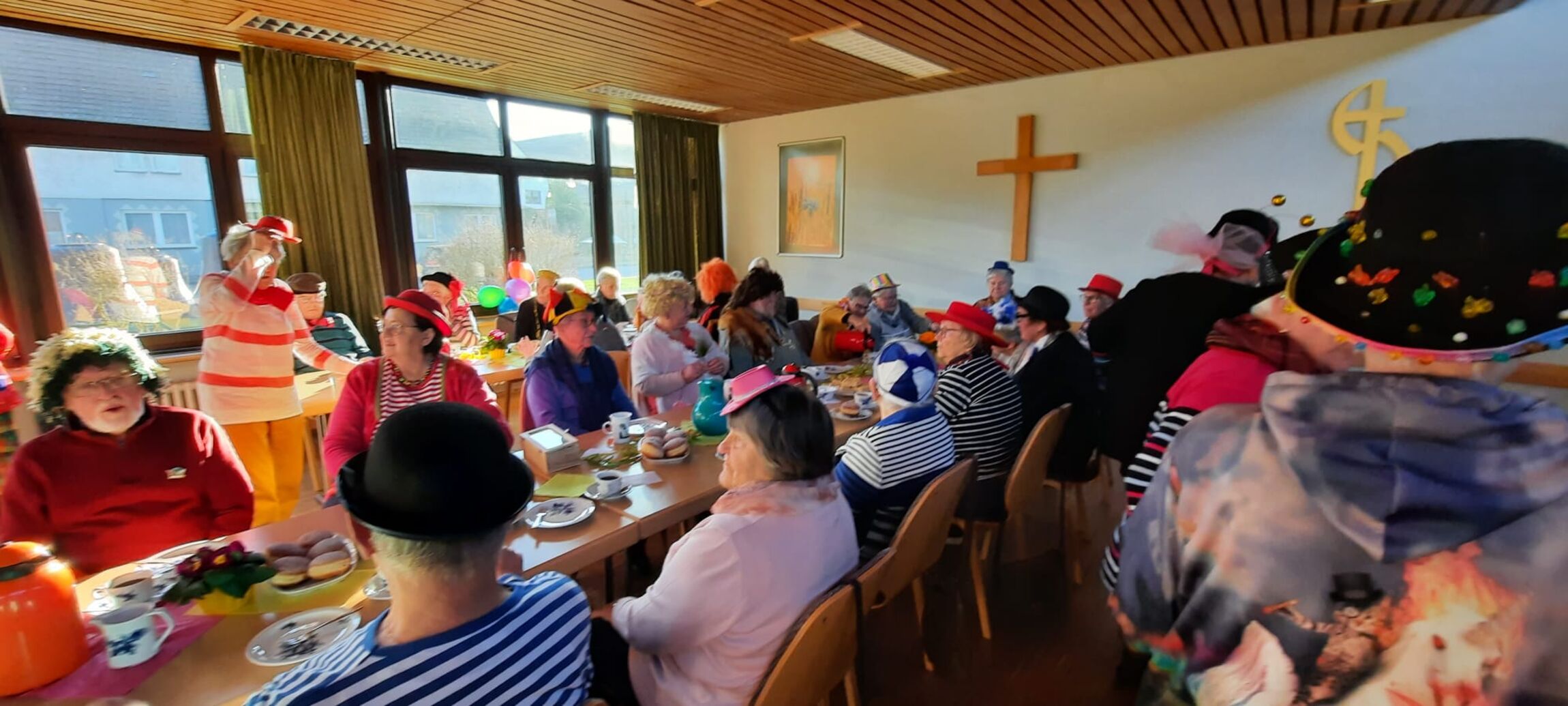 Einen Gemeindenachmittag der besonderen Art begingen wir im Januar. Denn dieses Mal gab es statt Kaffee und Kuchen Glühwein, Punsch und leckere Schmalzbrote. Beginnend mit einer Andacht über das Thema Zeit und unser Älterwerden starteten wir in diesen Nachmittag. Aus der Perspektive eines Fahrenden in einem Heißluftballon konnten wir auf die verschiedenen Pfade und Stationen unseres Lebensweges blicken und sozusagen meditativ eine Lebensreise unternehmen.