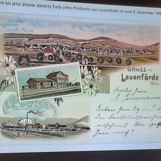 Werner Filmer hatte sich angeboten, uns in die Vergangenheit mitzunehmen, indem er alte Postkarten von Lauenförde präsentierte. Dazu konnten wir viele Besucher begrüßen. Herr Filmer ist Philokartist und seine Sammlung ist sehr umfangreich. Seine ältesten Postkarten stammen aus dem neunzehnten Jahrhundert. Wie Lauenförde sich im letzten Jahrhundert verändert hat, konnten wir anhand der vielen verschiedenen Postkarten vergleichen.
