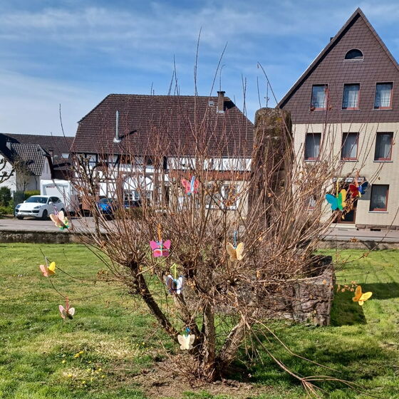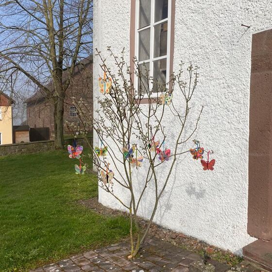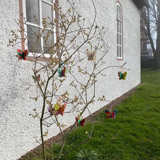 Vor Osterm wurden den Kindern in unserer Gemeinde Holzschmetterlinge verteilt, welche farbenfroh angemalt werden durften. Die Kindern wurden eingeladen ihre Schmetterlinge aufzuhängen.