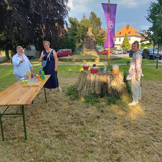 Am 8. Juli gestaltete Lektorin Heike Steffens aus Holzminden die zweite Sommerabendkirche. Dieser Gottesdienst war am Ende eines heißen Tages im Schatten der alten Bäume an der Kirche gut besucht, stimmungsvoll und sommerlich heiter. Die musikalische Begleitung gestaltete dieses Mal Niklas Püttcher.