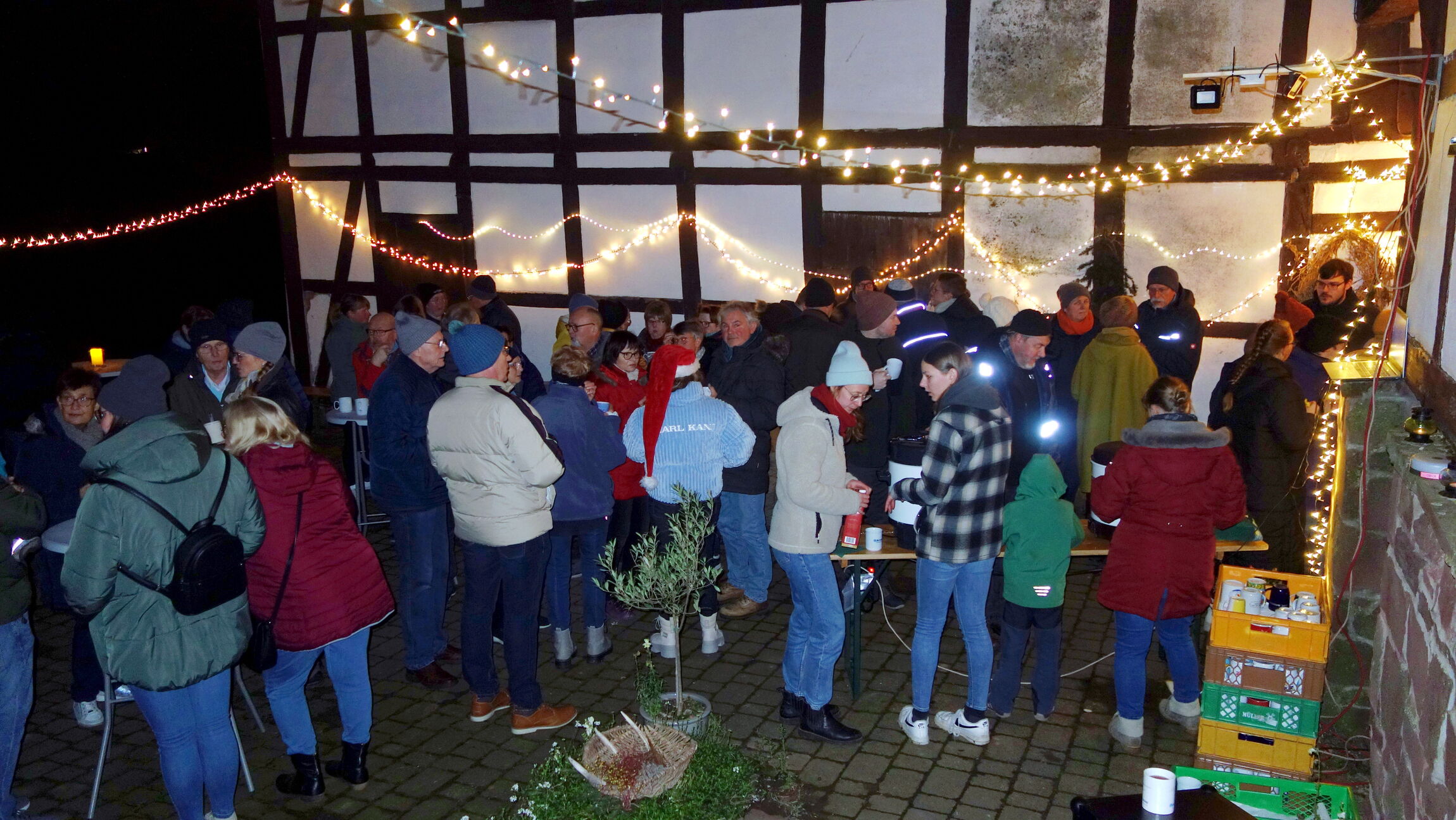 Trotz teilweise widriger Wetterbedingungen ließen es sich durchschnittlich 50 Besucher pro Abend nicht nehmen, die gemütliche Atmosphäre zu genießen. Glühwein, Kinderpunsch, Schmalzbrote, Käsebrote und Weihnachtsplätzchen sorgten für das leibliche Wohl.