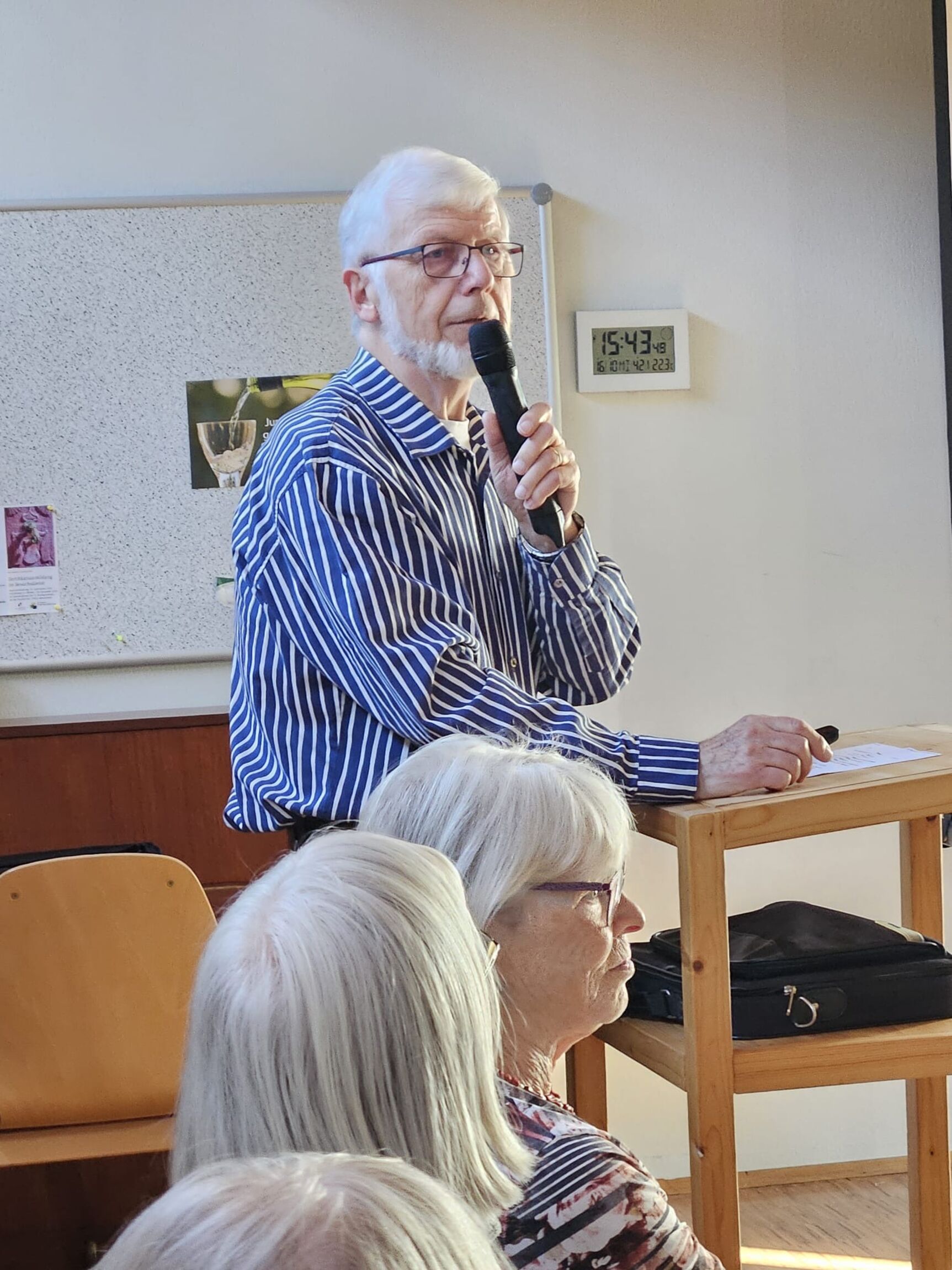 Nach der Sommerpause trafen sich am 18.09.2024 viele Interessierte zu Kaffee, Kuchen und einem Vortrag über den Hausnotruf. Herr Schiefer von den Johannitern aus Höxter klärte uns über die Vorteile eines Hausnotrufes, über Kosten und Handhabung auf.