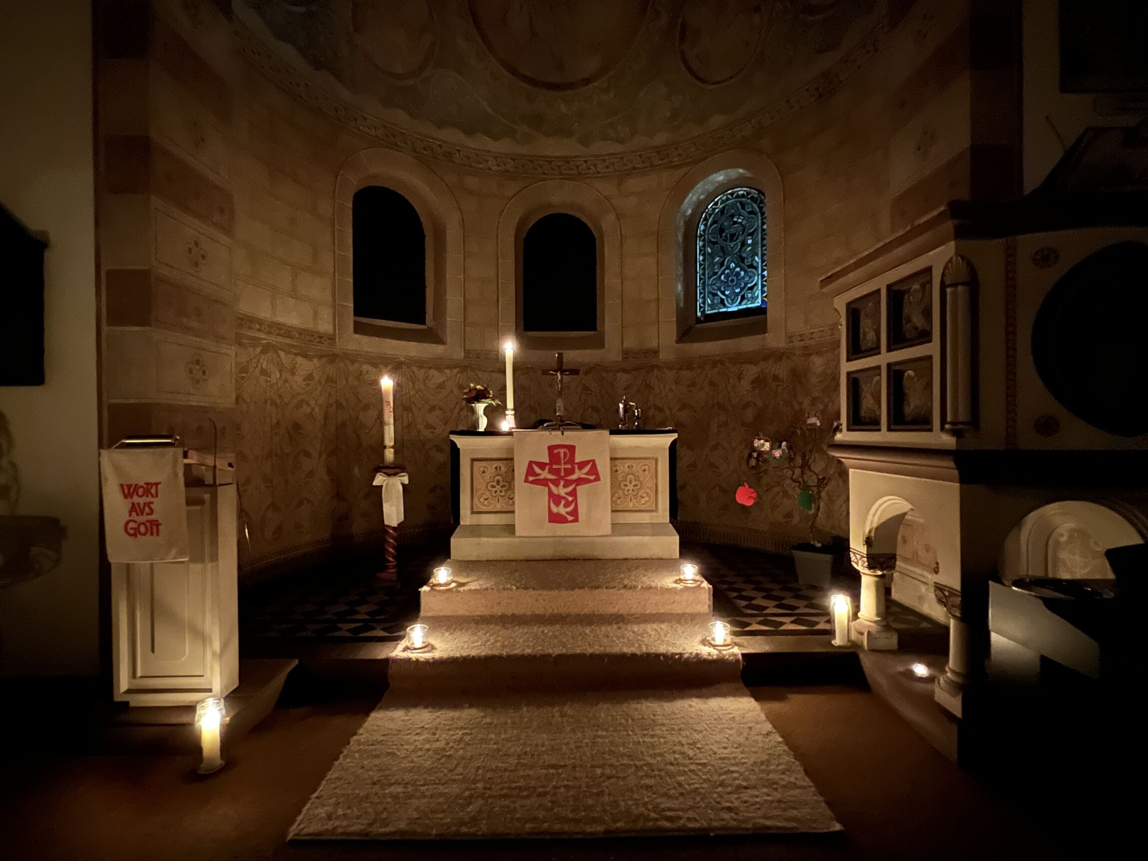 Durch die dunkle und stille Christuskirche in Fürstenberg erklingt der Liedruf "Christ ist erstanden!“ zum ersten Mal. Die kleine Flamme der Osterkerze erhellt die hohe Apsis und das Osterfenster erleuchtet. Jeder Besucher erhellt die Kirche mit einer kleinen Kerze. Halleluja, er ist erstanden! Und in einem Moment glaubt man sogar, es sei wärmer geworden um uns Menschen in der Christuskirche. Gemeinsam wurde das Abendmahl gefeiert und nach dem warmen, erhellenden Gottesdienst gab es traditionell Wein und Ostereier vor der Christuskirche in Fürstenberg. Im Licht der Feuerschale tauschten die Besucher noch viele Gedanken in dieser Nacht der Nächte aus.