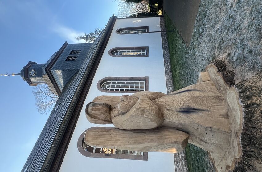Ein Engel aus Holz – neues Zeichen vor der Erlöserkirche