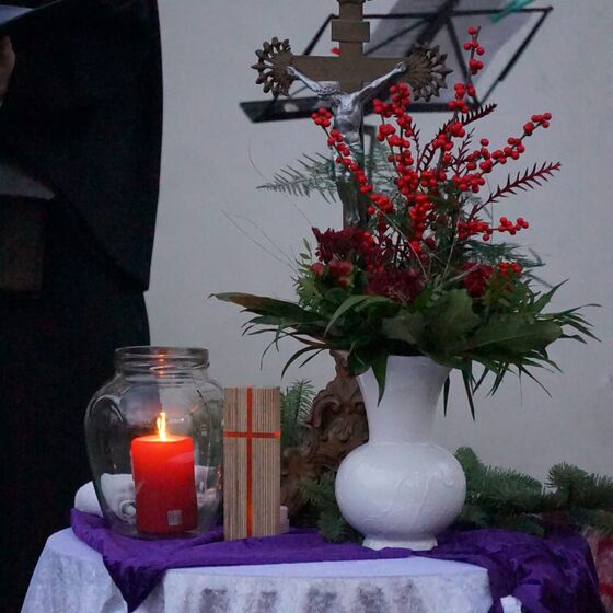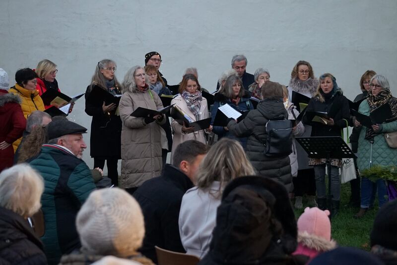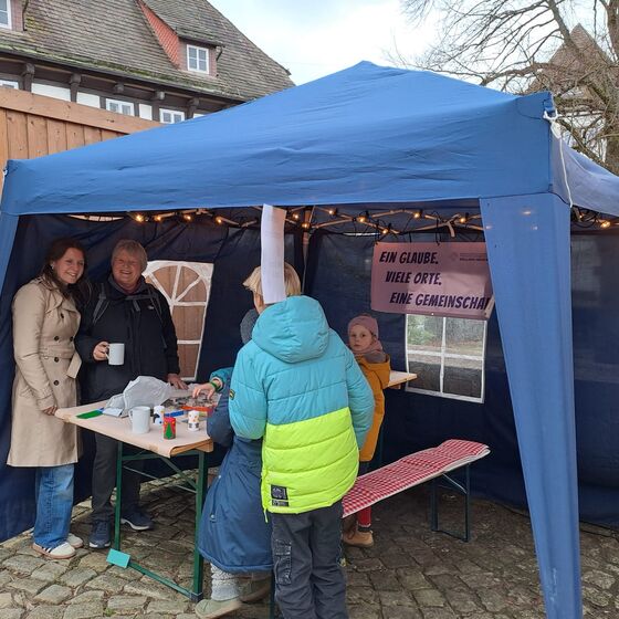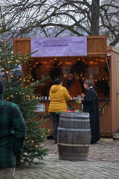 Auch in diesem Jahr hatte die Kirche einen Stand auf dem weihnachtlich geschmückten Schlosshof in Fürstenberg zum Adventszauber. Es konnten Friedenslichtkerzen erworben oder eine schlichte Kerze mit Wachs verziert werden. Am Sonntagnachmittag fand ein Gottesdienst mit Taufe auf dem Schlosshof statt, den der A-Cappella-Chor Fürstenberg begleitete.
