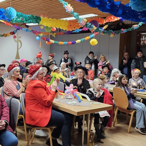 Geht eigentlich Karneval in der evangelischen Kirchengemeinde? Ja, natürlich und mit wachsender Begeisterung! Zum 3. Mal hatte nun das Team des Café Miteinander zur Karnevalsveranstaltung eingeladen und viele waren gekommen. Die Kolpingtanzzwerge aus Beverungen unter der Leitung von Anna Gehrmann eröffneten mit ihrer Vorführung den bunten Nachmittag. Wer nicht selbst gleich schon bunt gekleidet gekommen war, konnte sich ein Hütchen aus der Verkleidungskiste ausleihen. Der Saal war reichlich und farbenfroh geschmückt und die Stimmung von Anfang an toll. Bei Kaffee und Kuchen, Schunkelrunden und einem Sekt verging bei dem abwechslungsreichen Nachmittag die Zeit wie im Fluge.