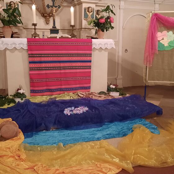 Am 07.März 2025 fand der ökumenische Gottesdienst zum Weltgebetstag in der Erlöserkirche Boffzen statt. Wunderbar geschaffen - lautete das Motto dieses Gottesdienstes, in dem die Liturgie von Frauen von den Cookinseln kam, und eindrucksvoll von dem Team in Szene gesetzt wurde. Bunte Tücher und Blumen symbolisierten die Verbundenheit mit den Frauen von den Cookinseln.