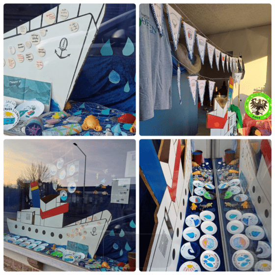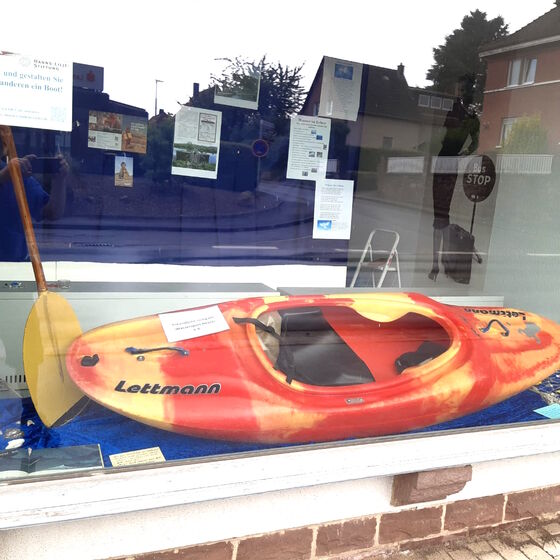 Ein Kunstprojekt: 20 verschiedene Wimpel in einem Stillleben, dazu verschiedene typische Gegenstände, die die Vereine, Gruppen, und Organisationen repräsentieren, die sich beteiligten. Sie waren dem Aufruf der evangelischen Ortskirchengemeinde Boffzen gefolgt, gemeinsam ein Kunstwerk zu gestalten. Thema war: In Sachen Wasser sitzen wir alle in einem Boot. Schülerinnen und Schüler der Grundschule steuerten Fische und Tropfen bei, die diesjährigen Konfirmanden und Konfirmandinnen der Trinitatis-Gesamtkirchengemeinde bemalten und beschrifteten Teller und Holzscheiben. Sie gingen den Fragen nach: 'Was können wir zum Schutz von Wasser tun' und 'Was bewirkt eigentlich das lebendige Wasser, von dem Jesus spricht?' Das Stillleben kann sich sehen lassen! Kommen Sie vorbei und schauen Sie es sich an. Sie finden es in den Schaufenstern gegenüber der Nord/LB in Boffzen. Falls sich noch weitere Gruppen beteiligen möchten, werden wir ein Plätzchen finden.