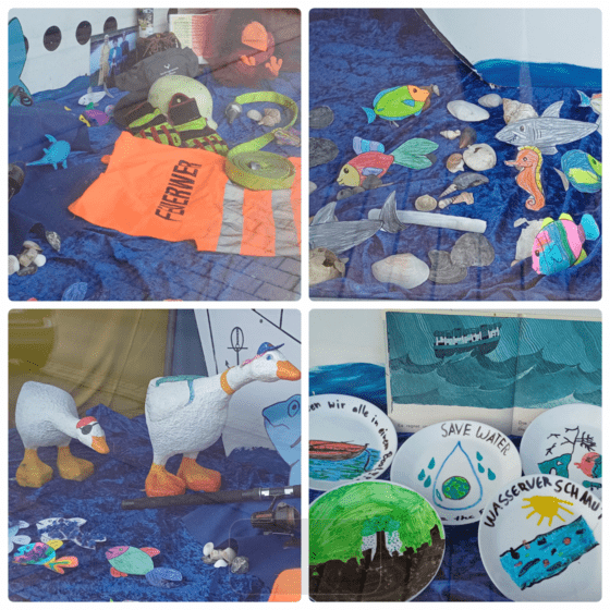 In den Schaufenstern gegenüber der Nord/LB finden Sie die Umsetzung zum Thema "Wasser des Lebens" in Boffzen.