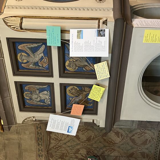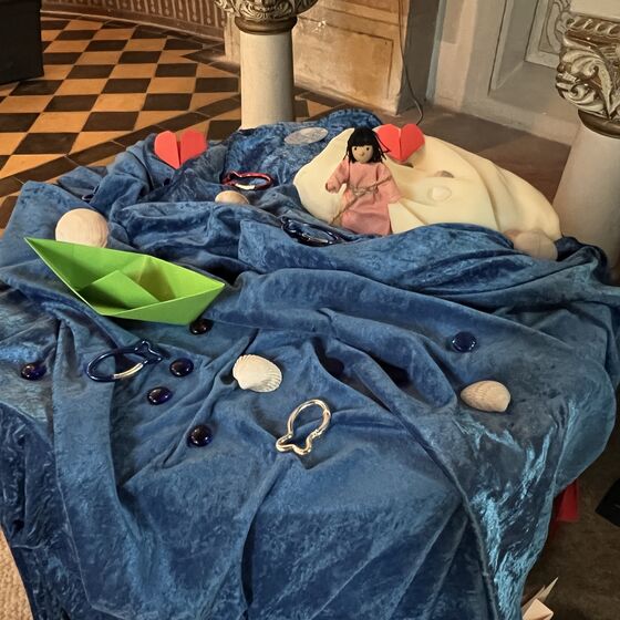 Passend zu dem kirchenkreisweiten Jahresthema „Wasser des Lebens“ ist diese überfließende Installation mit aktuellen Bezügen zum Thema Wasser und mit anregenden biblischen Texten gestaltet.
