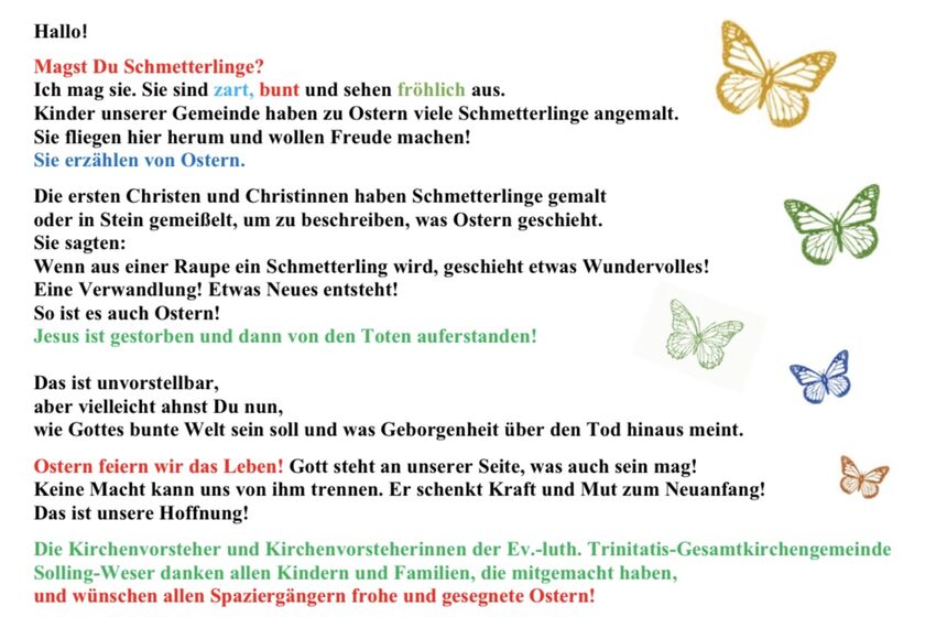 Sind Ihnen auch die vielen Schmetterlinge an oder in den Kirchen unserer Gesamtkirchengemeinde aufgefallen? Vor Osterm wurden den Kindern in unserer Gemeinde Holzschmetterlinge verteilt, welche ...