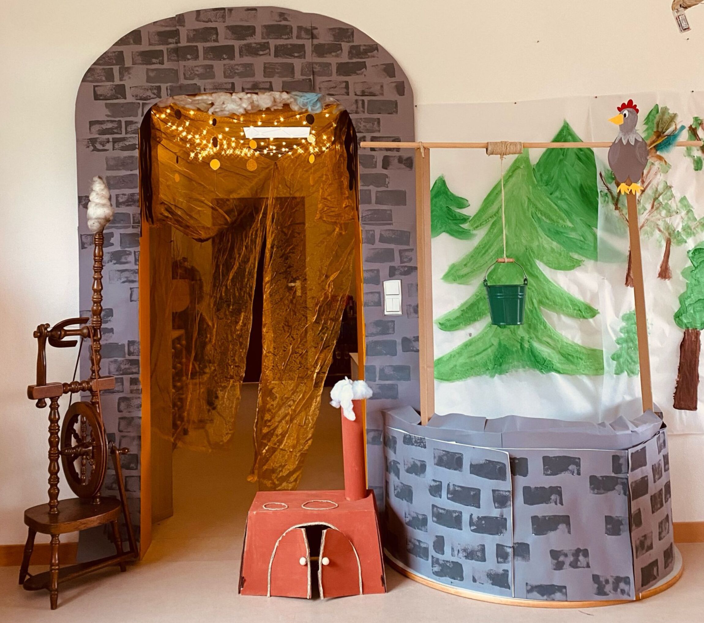 Am Rosenmontag erwachte die gesamte Kita wieder zu Karnevalshochburg und wer wollte, durfte die ganze Kita erkunden. In der Küche gab es ein rollendes Frühstücksbuffet, an dem sich die Kinder selbstständig aussuchen konnten, was ihr Herz begehrte. Die Räumlichkeiten der Mondgruppe waren märchenhaft gestaltet und man hatte das Gefühl, Frau Holle schüttelt gleich die Betten aus.