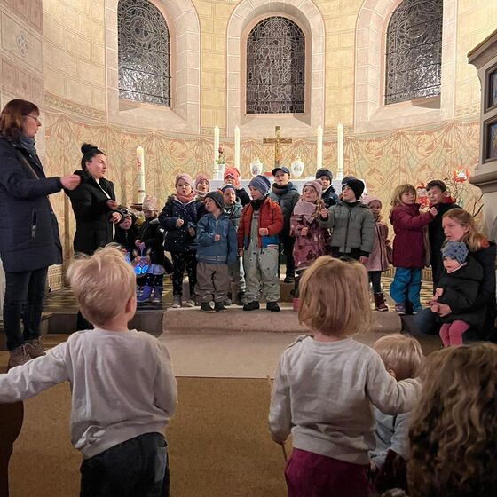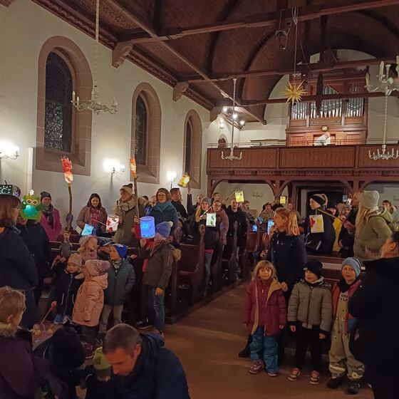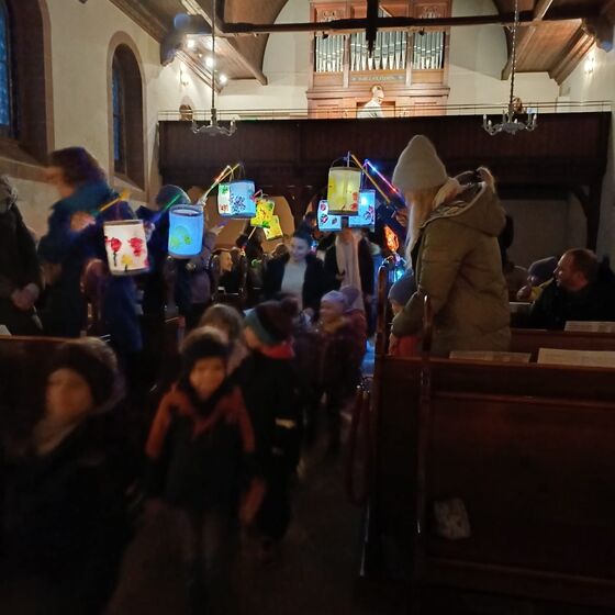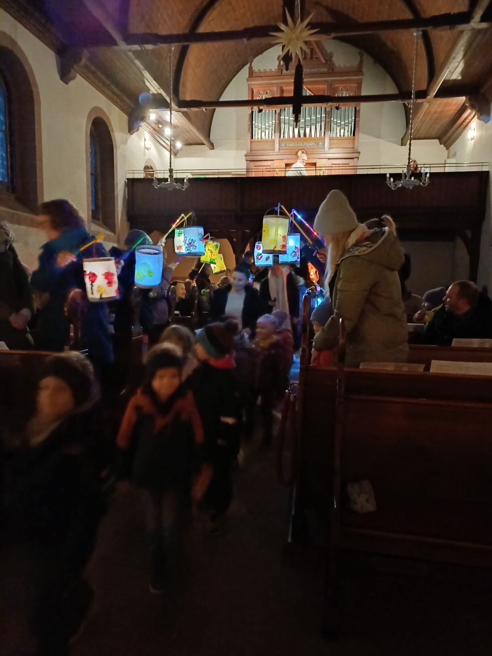 Auf das Laternenfest am 08. November freuten sich die Kinder sehr. Es begann mit einer abendlichen Martinsandacht in der Christuskirche, die gemeinsam mit Pastorin Bolte-Wittchen gestaltet wurde. Die Kinder zogen gemeinsam in die Kirche ein, die gebastelten Laternen leuchteten dabei den Weg zum Altar. Jede Laterne war ein kleines Kunstwerk, an denen man sehen konnte, wie viel Mühe sich die Kinder beim Basteln gegeben haben. Gemeinsam wurden Laternenlieder gesungen und die Kinder führten das Singspiel vom „armen Mann“ vor. Dabei präsentierten die Kinder, wie St. Martin seinen Mantel mit dem armen Mann teilte.