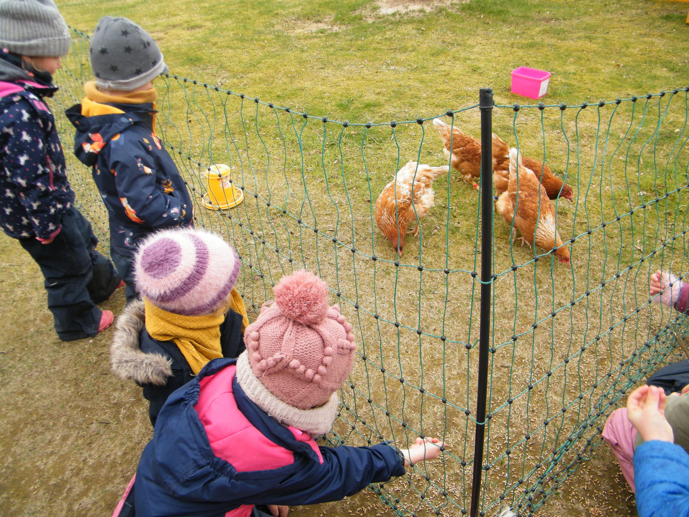 Passend zu Ostern waren auch unsere "Miethühner" wieder für zwei Wochen zu Besuch. Nach den guten Erfahrungen aus dem vergangenen Herbst hatten wir sie gleich für die Osterzeit reserviert. Für die Kinder war es wieder ein tolles Ereignis, die Hühner hautnah zu erleben. Beobachten, füttern, streicheln und jeden Tag frische (Oster-) Eier zu finden, machte viel Freude. Wir danken herzlich dem Förderverein, der uns diese Aktion ein weiteres Mal ermöglichte.