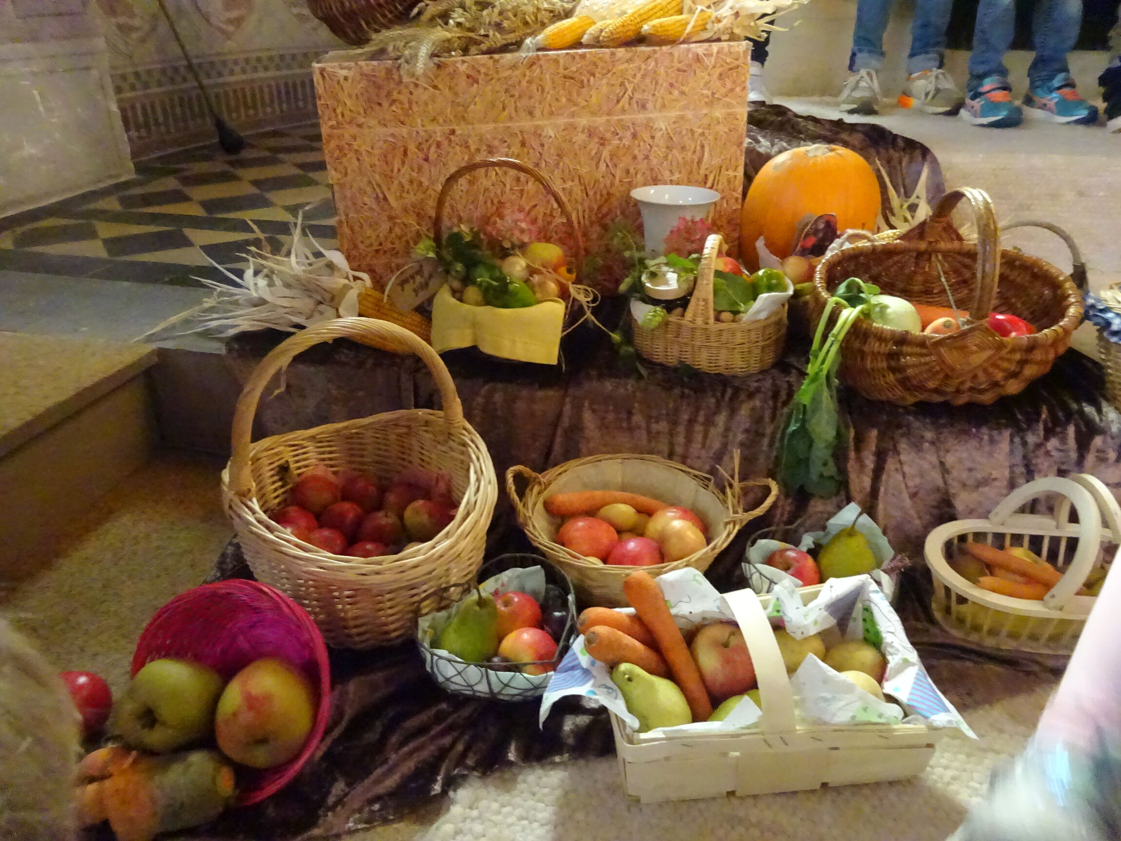 Die Kinder sagten Danke mit ihren einstudierten Liedern und alle brachten viele Gaben mit, die den Altar schmückten und zeigten, wofür wir dankbar sein können.