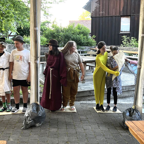 Am letzten Abend haben die Konfirmanden selbst mitgebrachte Kostüme zum Einzug in die „Arche Noah“ getragen und auch eigene Beiträge in Form von Spielen zu dem gelungenen Abschluss der Konfirmandenfreizeit beigesteuert.