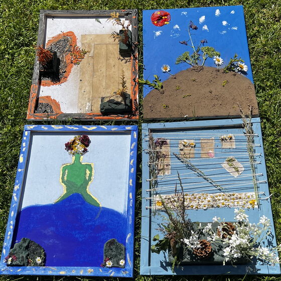 Neben der thematischen Beschäftigung zum Motto dieser Freizeit wurde bei einer weitläufigen Wanderung alles gesammelt, was dann auf Leinwänden stilvoll zu den vier Elementen Luft, Erde, Wasser und Feuer kunstvoll gestaltet werden konnte.