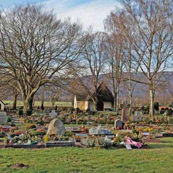 Anschliessend wurde der Friedhof auf den Kirchplatz verlegt und ist 1848 an den heutigen Ort verlegt und 1889 sowie nach 1945 gemeinsam mit der Gemeinde Boffzen erweitert worden. 1964 wurde die Friedhofskapelle gebaut und 1992 eine anonyme Urnengrabstätte eingerichet.