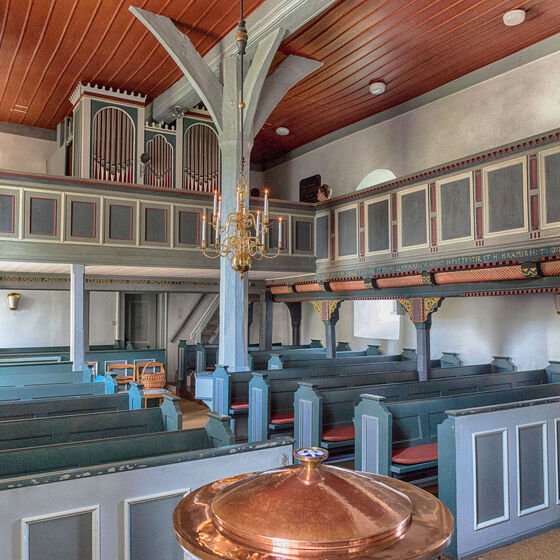 - 1581 wurde das von Löwen getragene Taufbecken aus Sandstein gemeißelt und erhielt die lateinische Inschrift V-D-M-I-A, das bedeutet Verbum Dei Manet in Aeternam - übersetzt heißt dies: Das Wort Gottes bleibt bis in Ewigkeit. Die Kupferschale wird mit einem Deckel verschlossen (von Franz Bolze, Bremen). Gotische Altarleuchter, ebenfalls von Löwen getragen sowie ein prächtiger Kronleuchter wurden das Opfer eines Kirchenraubes im Jahre 1979.