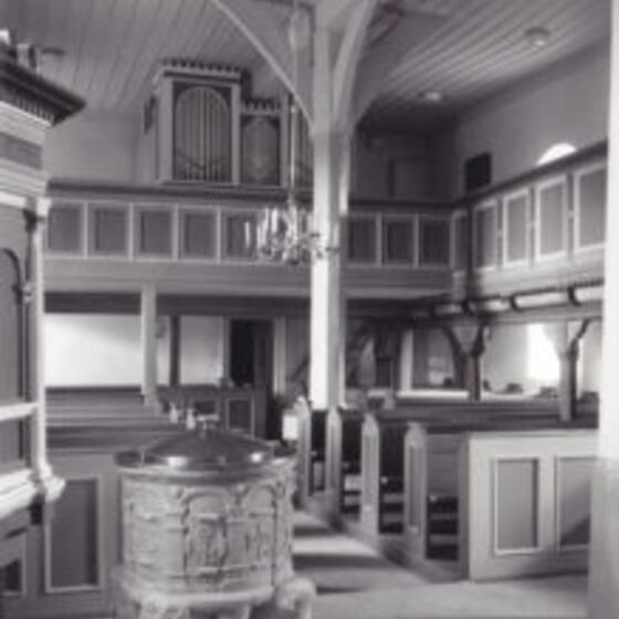 - 1575 wurde auf den Resten der Ruine ein Neubau errichtet. Das neue Gotteshaus wurde nach dem Vorbild nordischer Zwei-Masten-Stabkirchen errichtet.