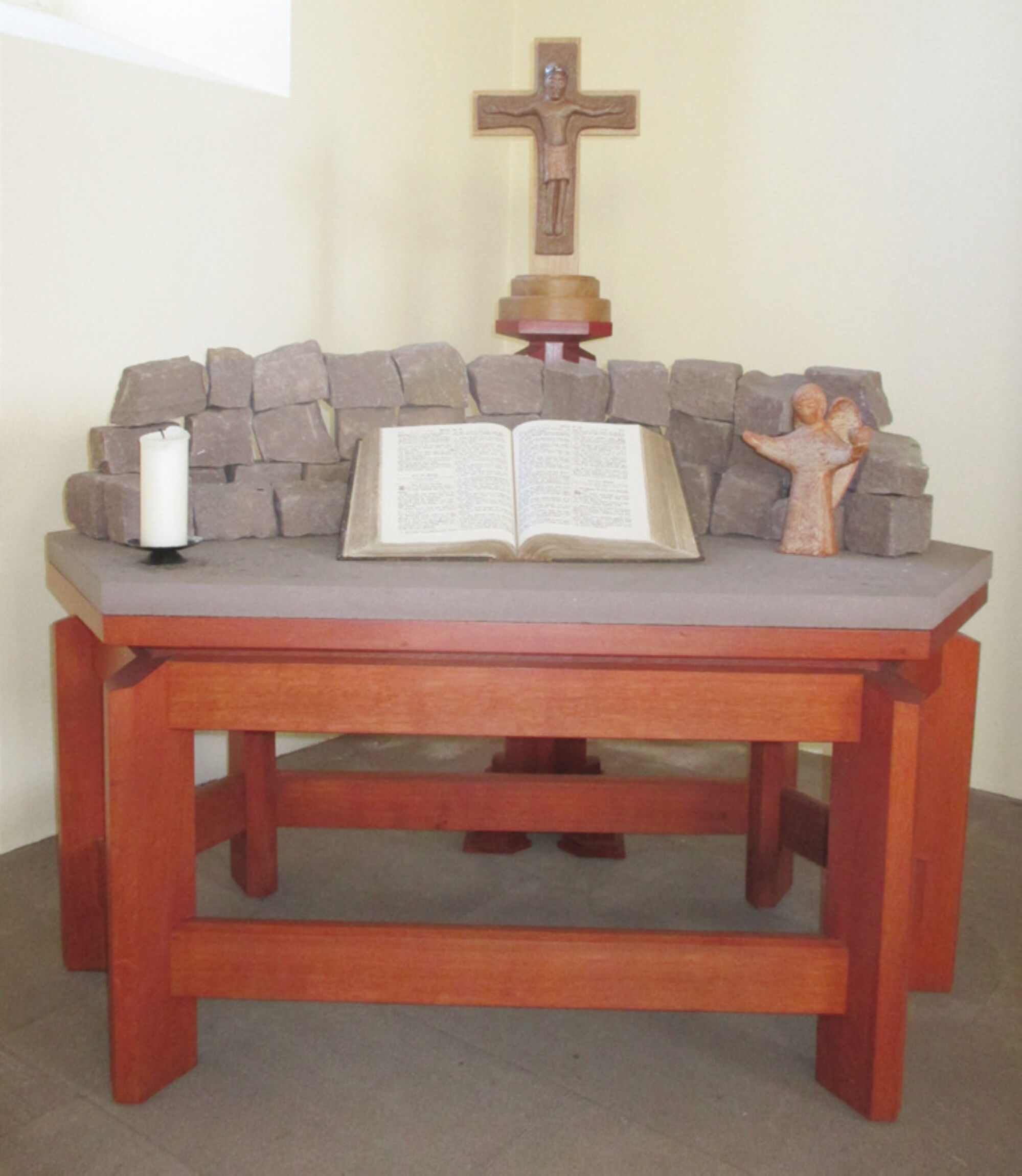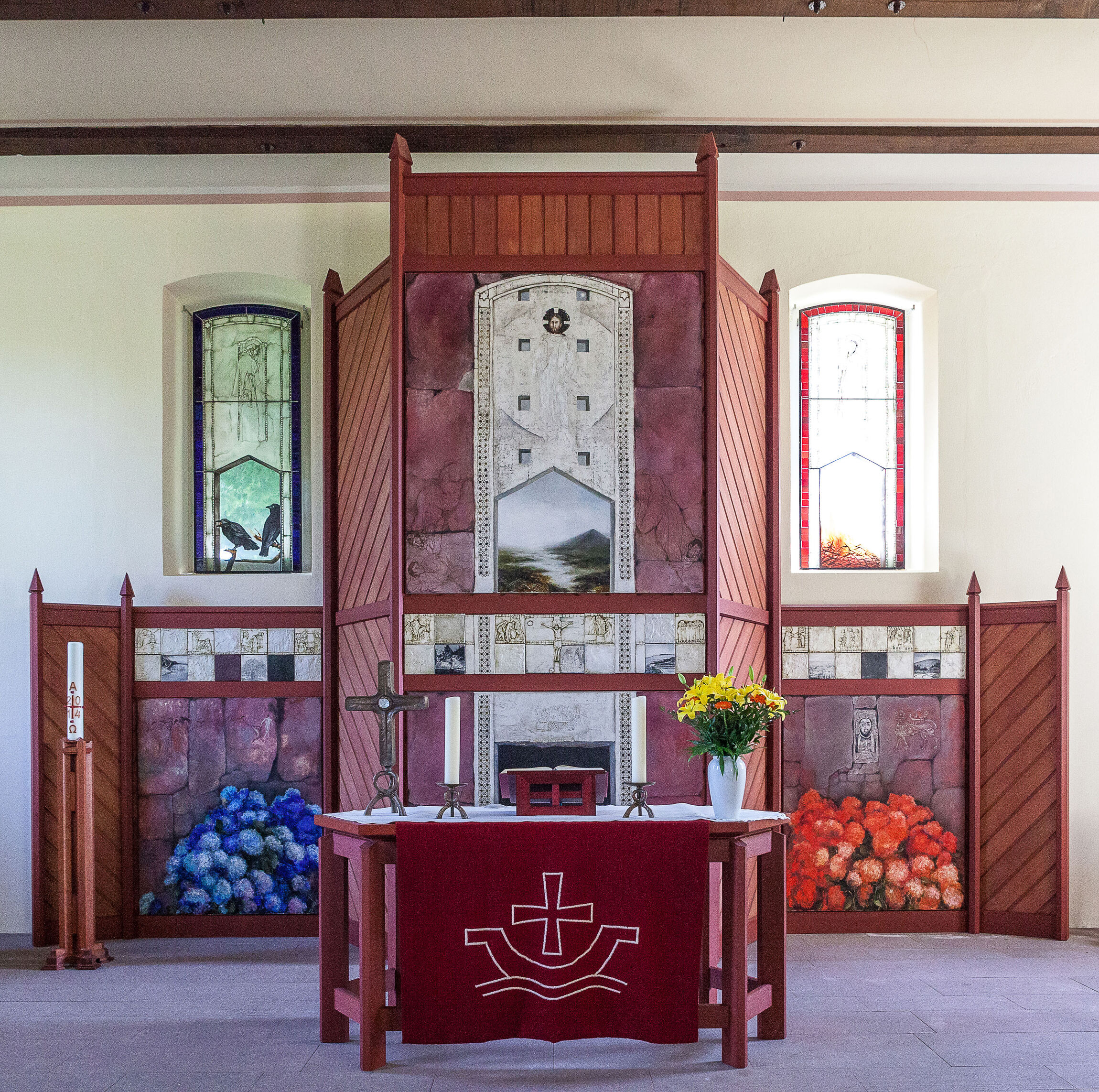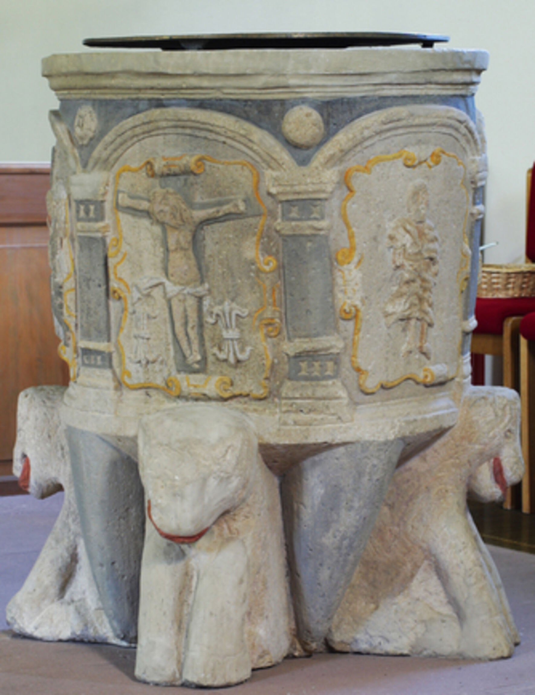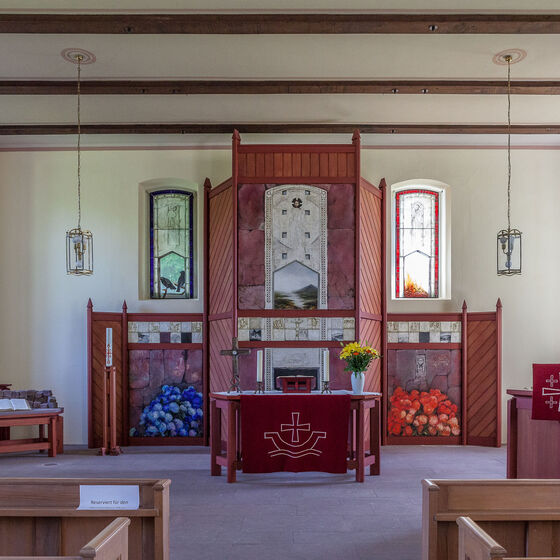 Das Innere der Kirche wurde im Laufe der Zeit oft verändert. Bei der Wiedereinweihung nach der Renovierung 1996 erhielt die Kirche das Patrozinium des Evangelisten Markus. Nun befindet sich der Löwe, das Symboltier des Markus, im Ortsnamen und in der Kirche.
