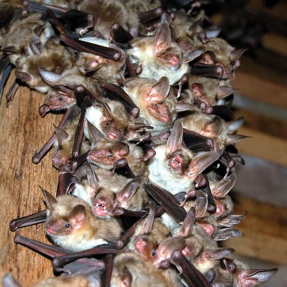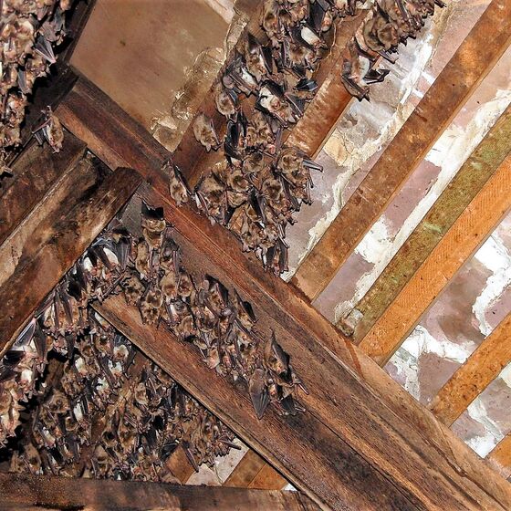 In Deutschland sind noch ca. 25 Fledermausarten beheimatet. Die grösste und imposanteste von ihnen, mit 65 bis 80 mm Körperlänge und einem Gewicht von 30 bis 40 g, ist das Große Mausohr. Durch eine Spannweite von 350 bis 430 mm erscheint sie im Fluge noch deutlich größer als eine Amsel. Wie in einigen anderen Kirchen unserer Region, hat sich das Große Mausohr seit Jahren auch die Meinbrexer Kirche als Sommerquartier zur Aufzucht seiner Jungen ausgesucht. Von April bis September nutzt diese größte Fledermausart Deutschlands unsere Kirche als Wochenstube. Im Sommerquartier sind nur Weibchen mit Ihren Jungen anzutreffen. Tagsüber hängen sie meist dicht gedrängt an den Balken und kuscheln oder schlafen. Erst bei Dunkelheit verlassen sie ihre Quartiere und gehen auf Insektenjagd. Mit bis zu 2500 Tieren pro Jahr gehört sie zu den größten Kolonien Deutschlands und ist die größte bekannte in Norddeutschland. Wo so viele Tiere zusammenleben, bleibt natürlich auch jede Menge Kot zurück. Um die 1000 Liter sammeln sich pro Jahr auf dem Kirchenboden und müssen im Frühjahr geerntet werden, damit die Fledermäuse bei ihrer Rückkehr aus dem Winterquartier wieder eine saubere Sommerwohnung vorfinden.